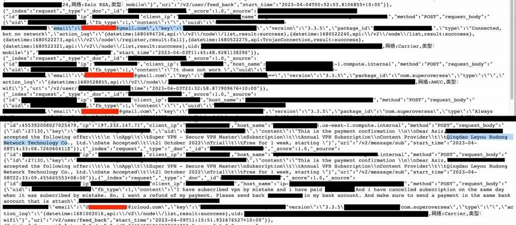 在数据库中找到的其他信息包括电话或设备型号、操作系统、互联网连接类型和 VPN 应用程序版本。此外,退款请求和付费帐户详细信息也存在于违规行为中。