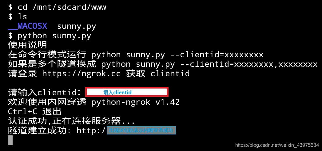 <text>看到这个界面表示内网穿透成功了:-)</text></br>