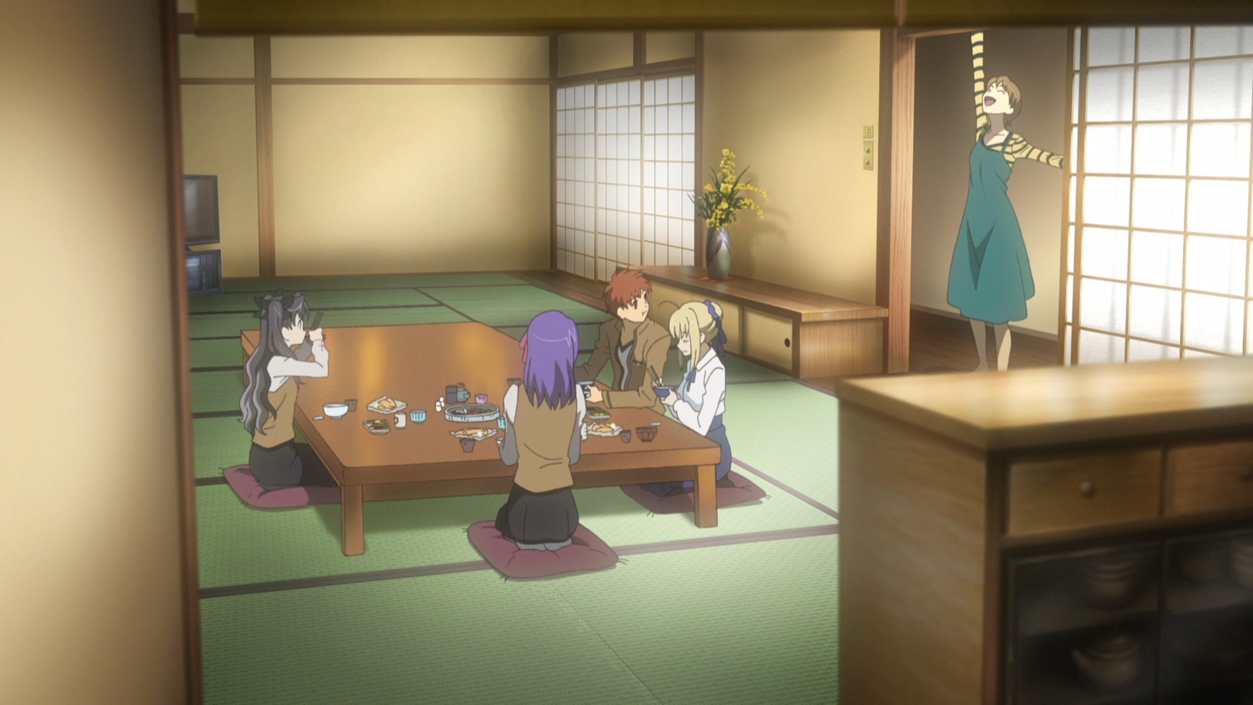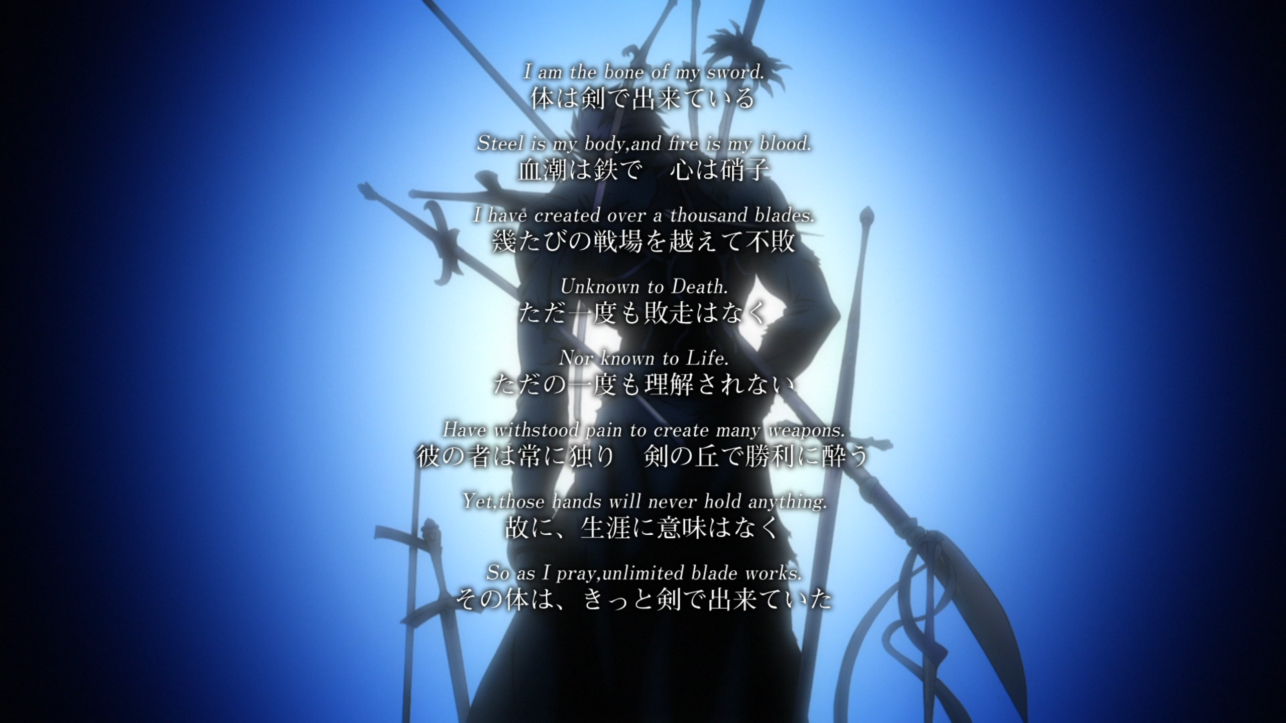 另一边,与凛就读同一所高中的卫宫士郎,也因十年前的大火灾而失去了双亲,他被身为魔术师的养父卫宫切嗣抚养长大,卫宫切嗣一边抚养卫宫士郎,一边独自专研魔术。因为自己是那场火灾的唯一生还者,卫宫士郎认为他要为了拯救别人而活下去,心中充满正义感的他不顾养父的反对,立志学习魔术。但是,卫宫士郎既不是魔术家的子嗣,也没有成为魔术师素养,他只学会了一个“强化”魔术。